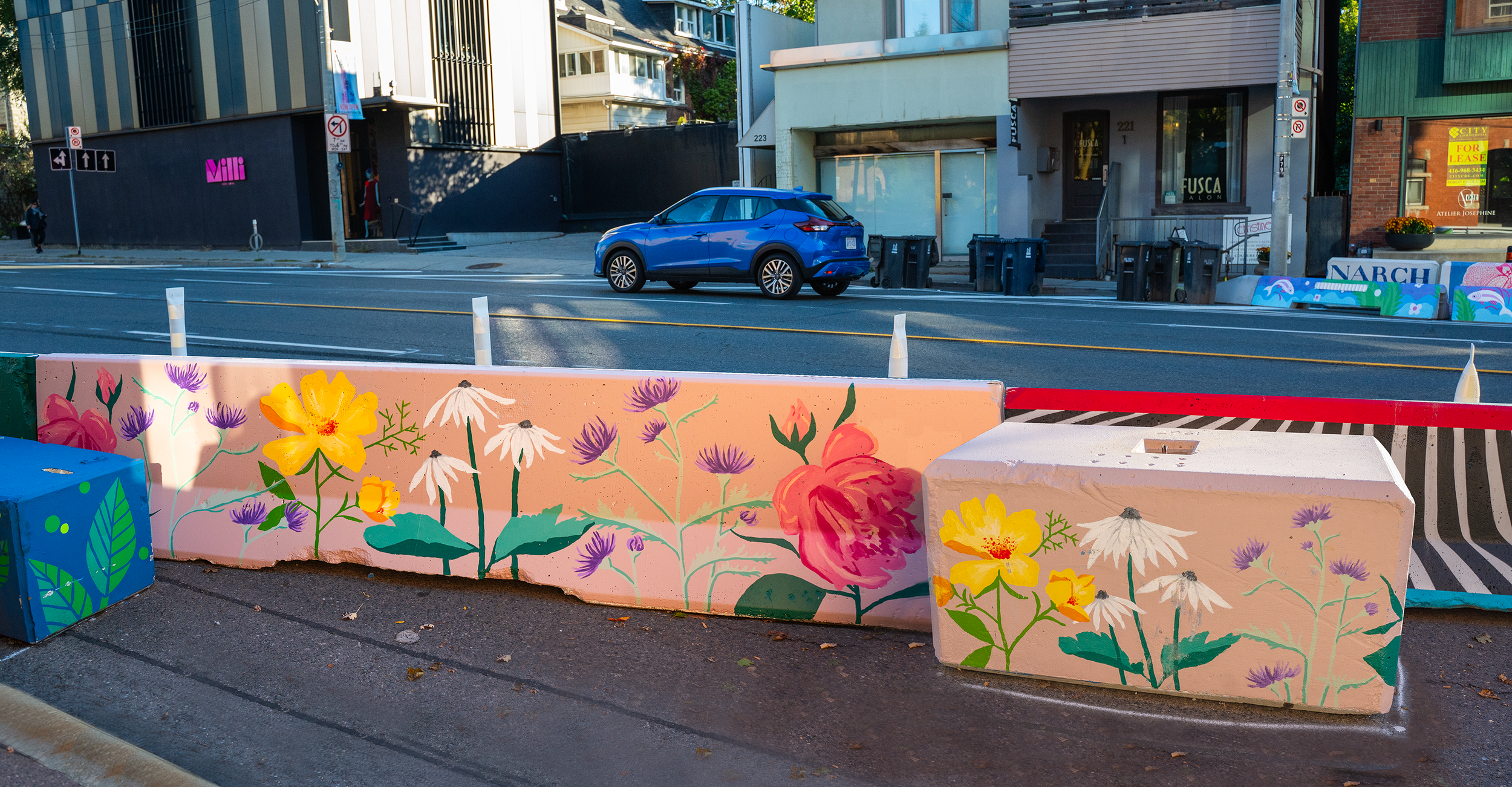 A wild ride, Avenue Road Bike Barrier Murals, latex on concrete barrier, 2024 (image credit: Kwame Newman-Bremang)
